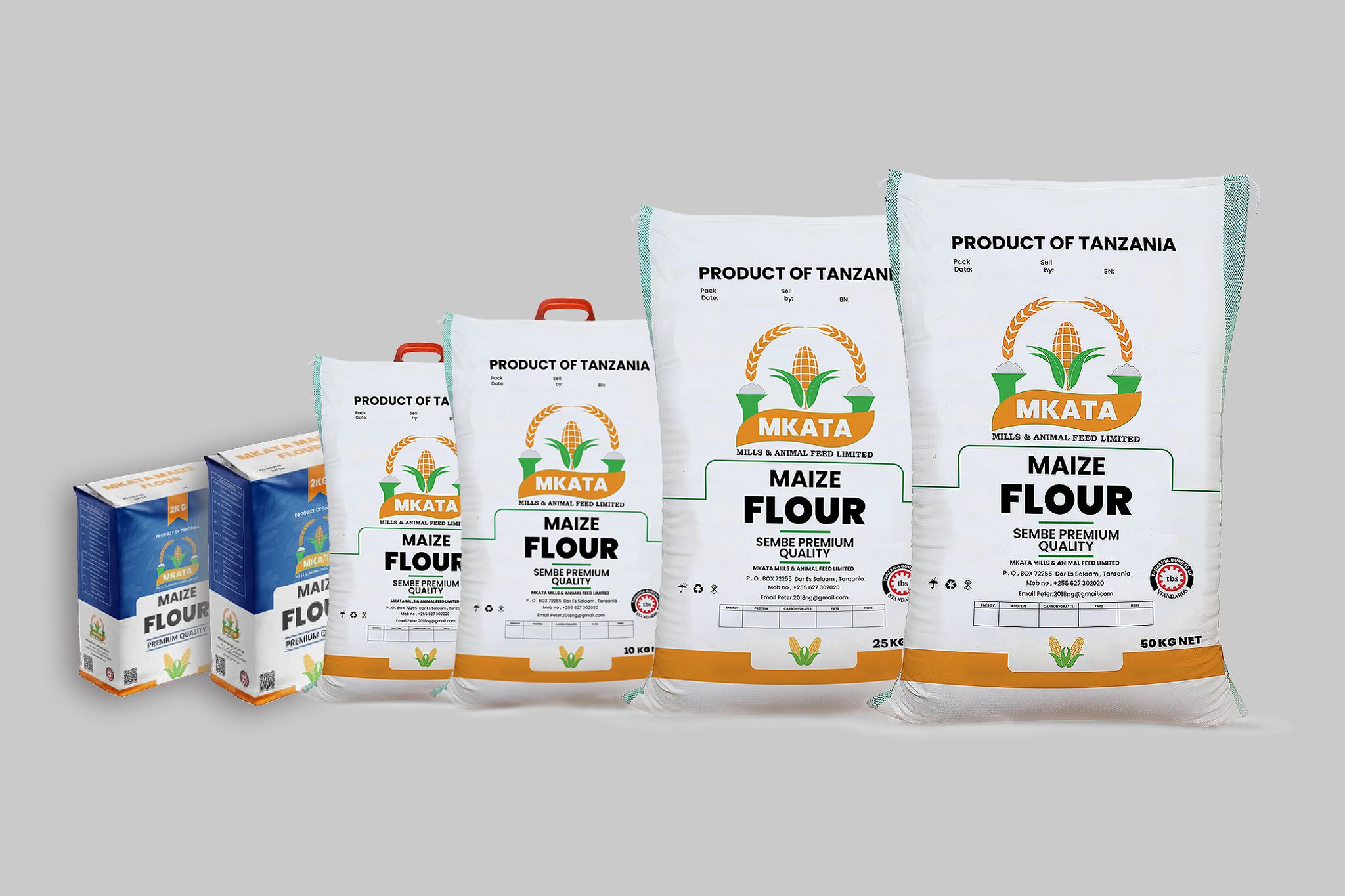We produce and package high-quality maize flours, including popular Sembe and Dona varieties, tailored to meet diverse culinary needs. Our maize flours are available in consumer-friendly packs of 1kg, 2kg, 5kg, 10kg, 25kg and 50kg, designed for households, retailers, and bulk buyers alike. Every product reflects our commitment to stringent quality control, food safety, and consistent nutrition.